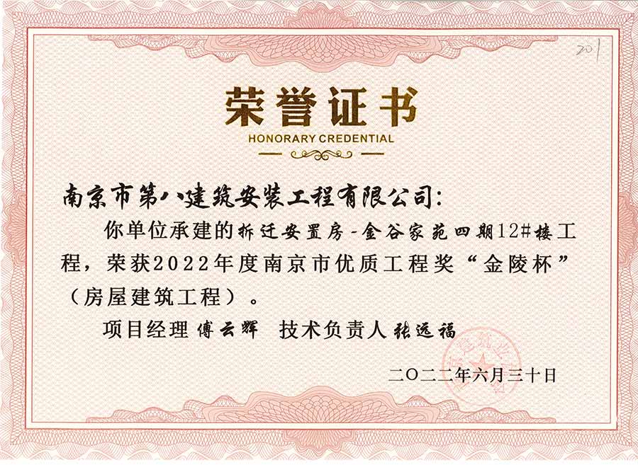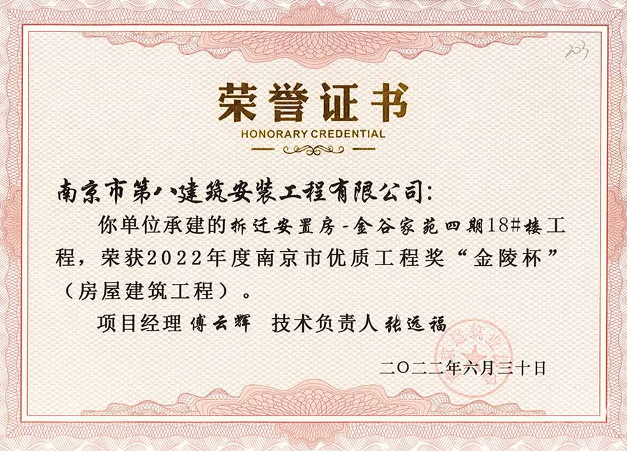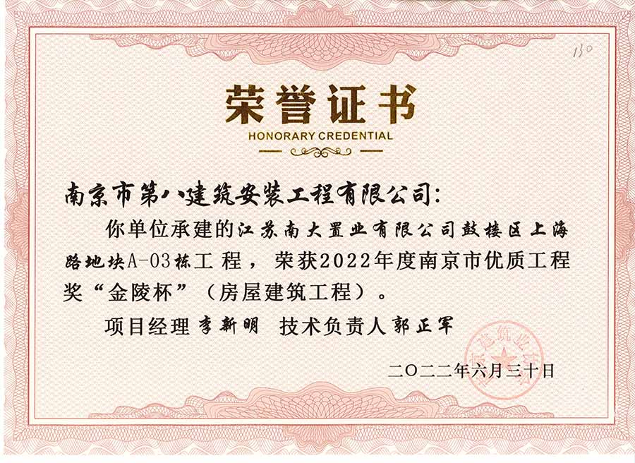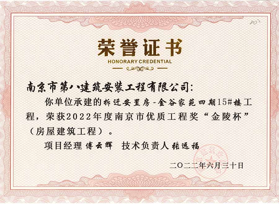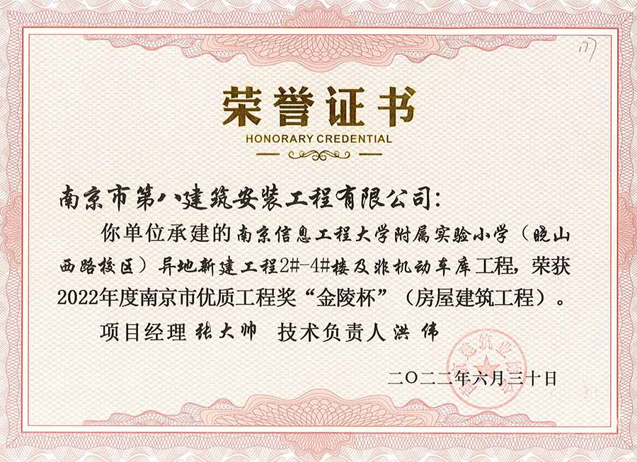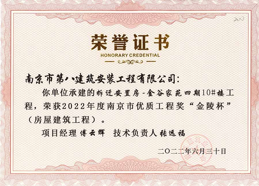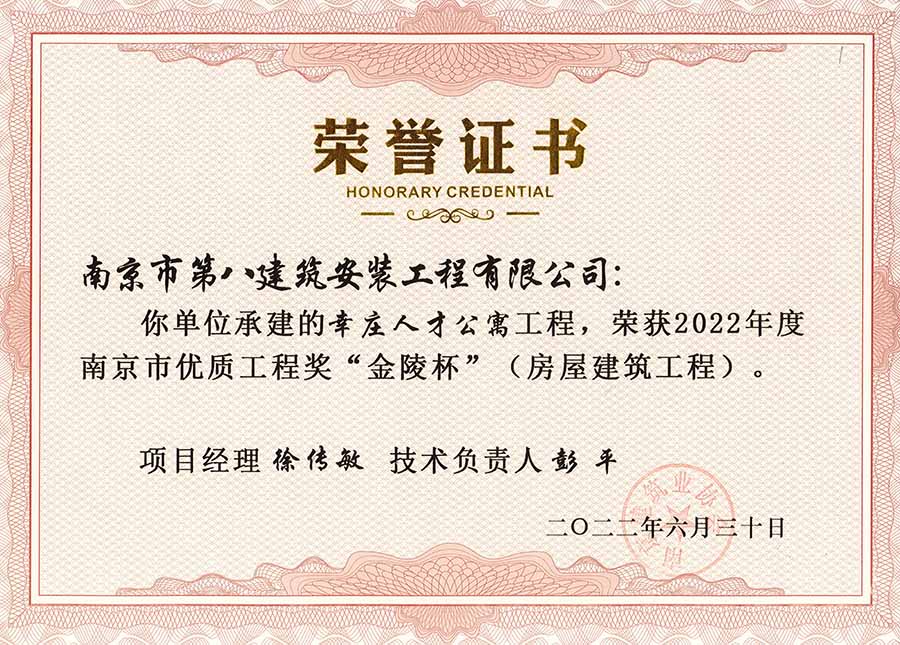 6月30日,南京建協(xié)下發(fā)了(2022)24號文件《關(guān)于公布2022年南京市優(yōu)質(zhì)工程獎“金陵杯”(房屋建筑類、軌道交通工程)項目名單的通知》,決定授予“幸莊人才公寓”等208個項目為2022年南京市優(yōu)質(zhì)工程獎“金陵杯”,我公司承建的13個項目榮獲榮譽。